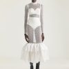 - Long bustier evening dress in organza.