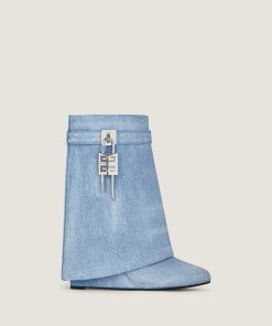 Givenchy Women’s Shoes Shark Lock Ankle Boots In Washed Denim In – Medium Blue | Medium Blue