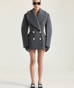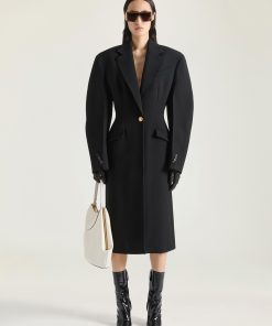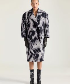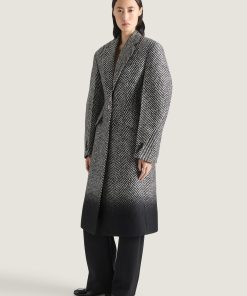 Givenchy Women’s Ready-to-wear Cocoon Fitted Coat In Herringbone Wool Silk Jacquard | Black & White