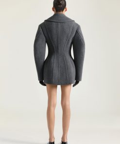 Givenchy Women’s Ready-to-wear Cocoon Fitted Coat In Herringbone Wool Silk Jacquard | Black & White