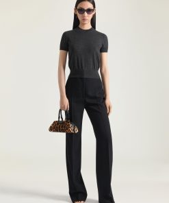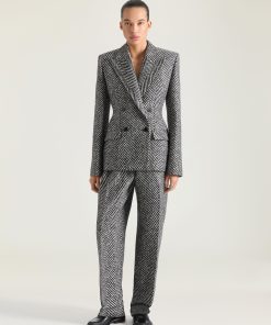 Givenchy Women’s Ready-to-wear Double Pleat Pants In Wool Silk Herringbone | Black & White