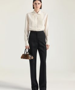 Givenchy Women’s Ready-to-wear Double Pleat Pants In Wool With Hair Print | Black & White