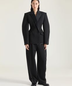 Givenchy Women’s Ready-to-wear Cocoon Tailored Pants In Cotton Herringbone | Black & White