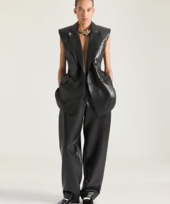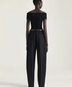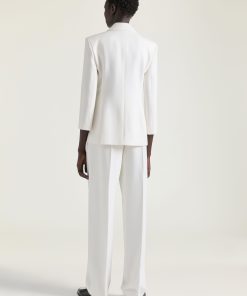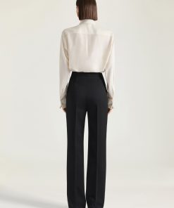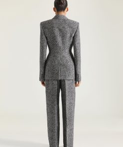 Givenchy Women’s Ready-to-wear Double Pleat Pants In Wool Silk Herringbone | Black & White