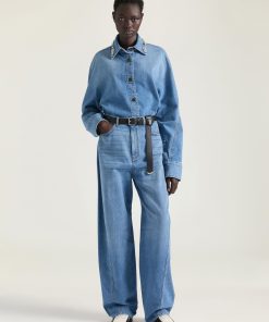 Givenchy Women’s Ready-to-wear Shirt In Washed Denim With Crystals In – Medium Blue | Medium Blue