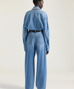 Givenchy Women’s Ready-to-wear Shirt In Washed Denim With Crystals In – Medium Blue | Medium Blue