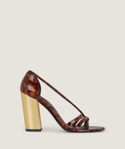 Givenchy Women’s Shoes Block Heeled Sandals In Mirror Effect Leather In – Golden | Golden