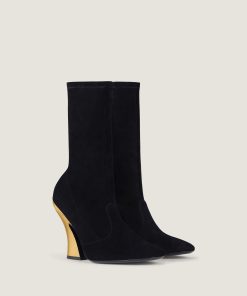 Givenchy Women’s Shoes Sculpted Ankle Boots In Suede | Black & Golden