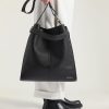 - Front adjustable leather belt to cinch the bag’s opening for a customized fit.