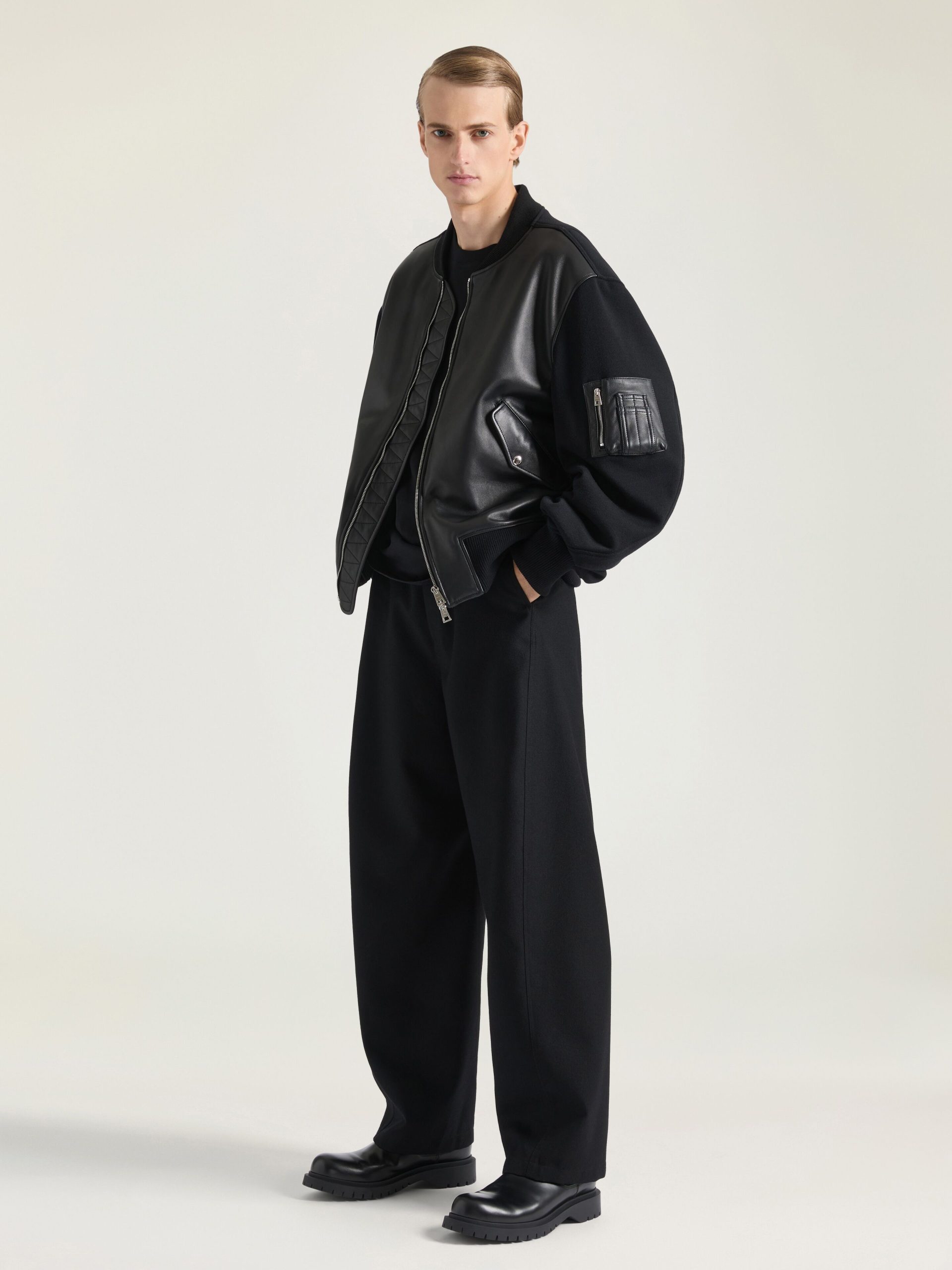 - Bomber in nappa leather and wool.