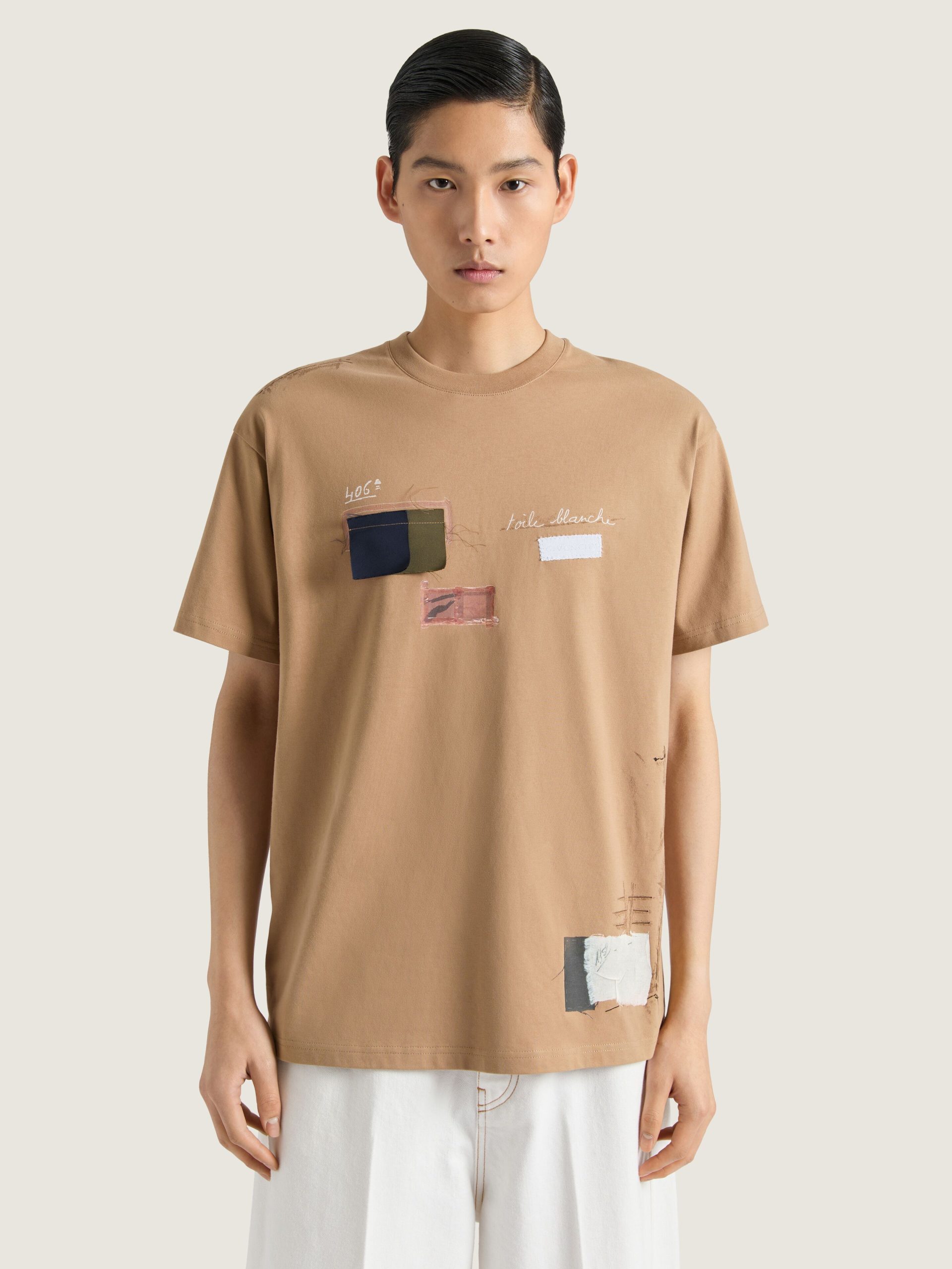 - Trompe l’Œil print with fabric swatches embroidered on the front.