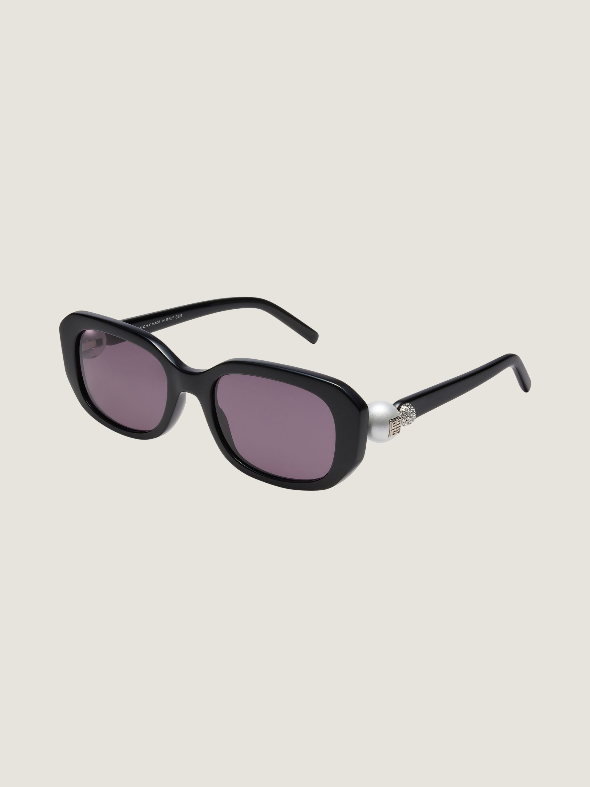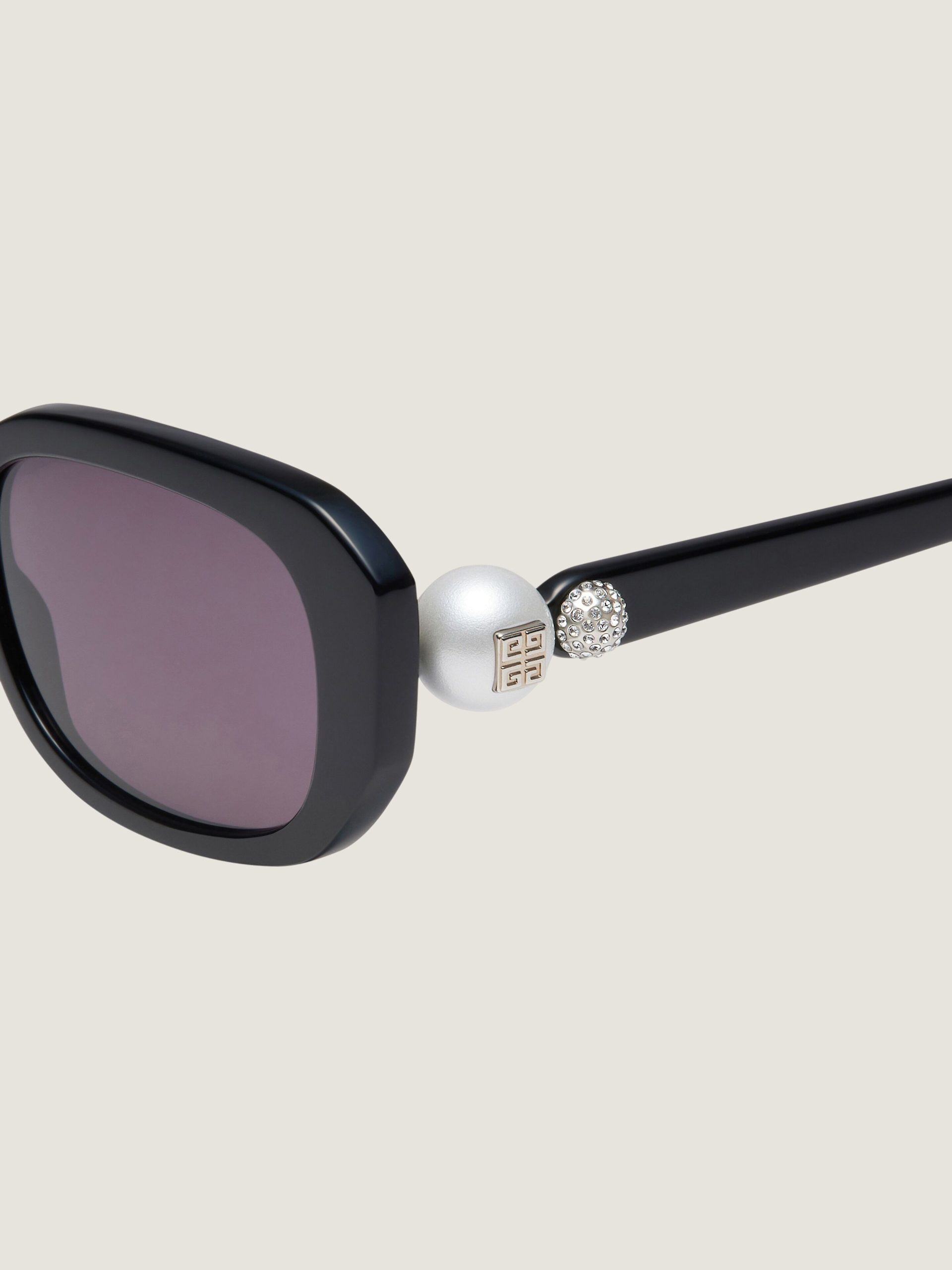 - Metal pearl with 4G metal piece and semi-sphere paved with crystals on the temples.