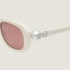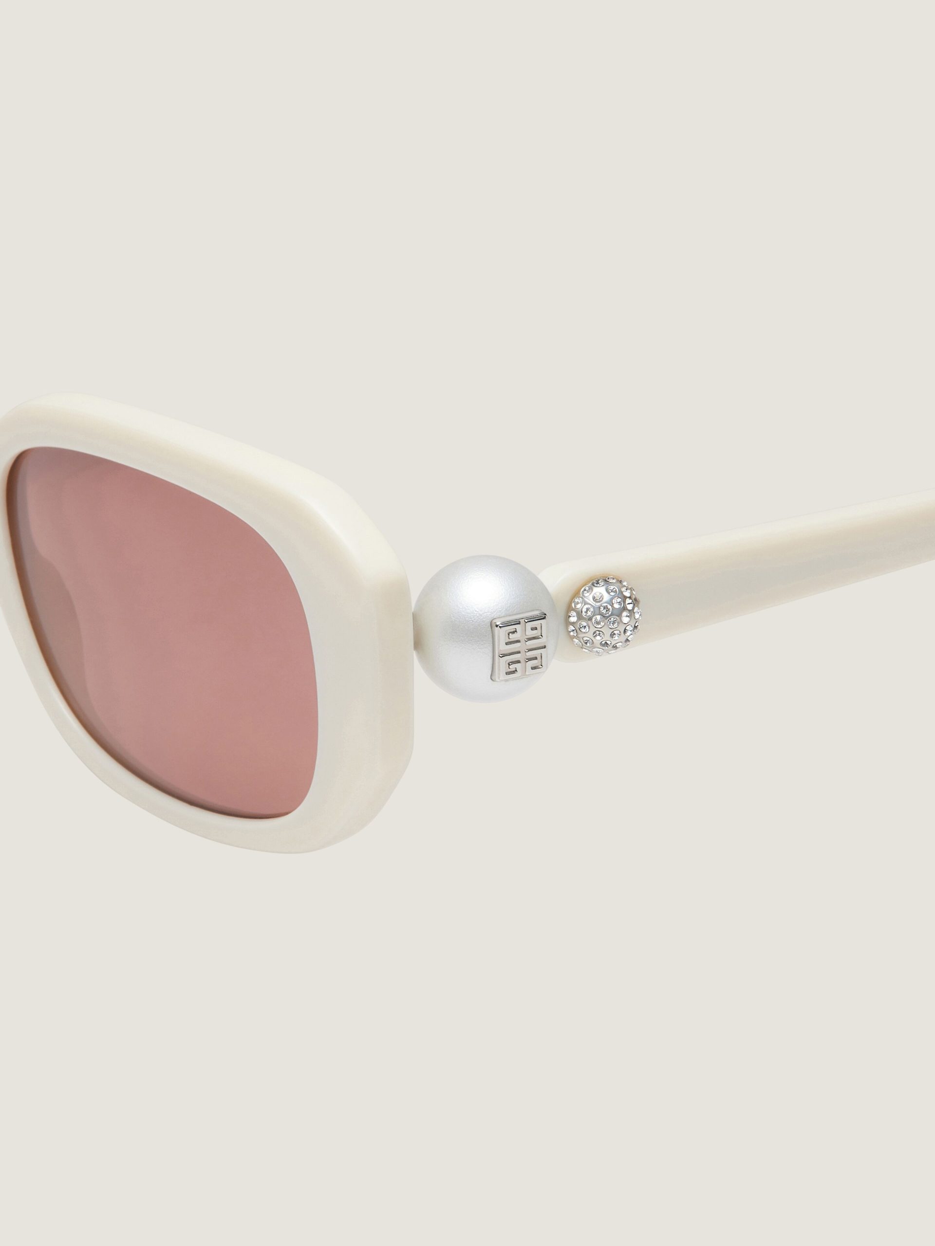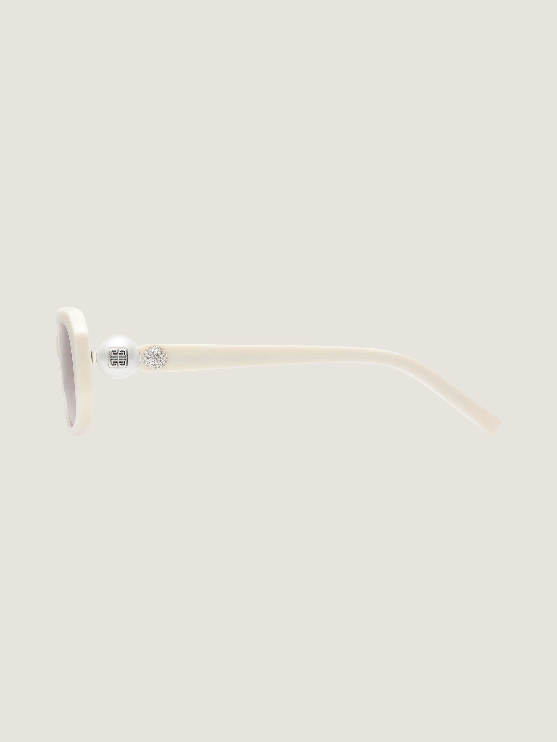 - Metal pearl with 4G metal piece and semi-sphere paved with crystals on the temples.
