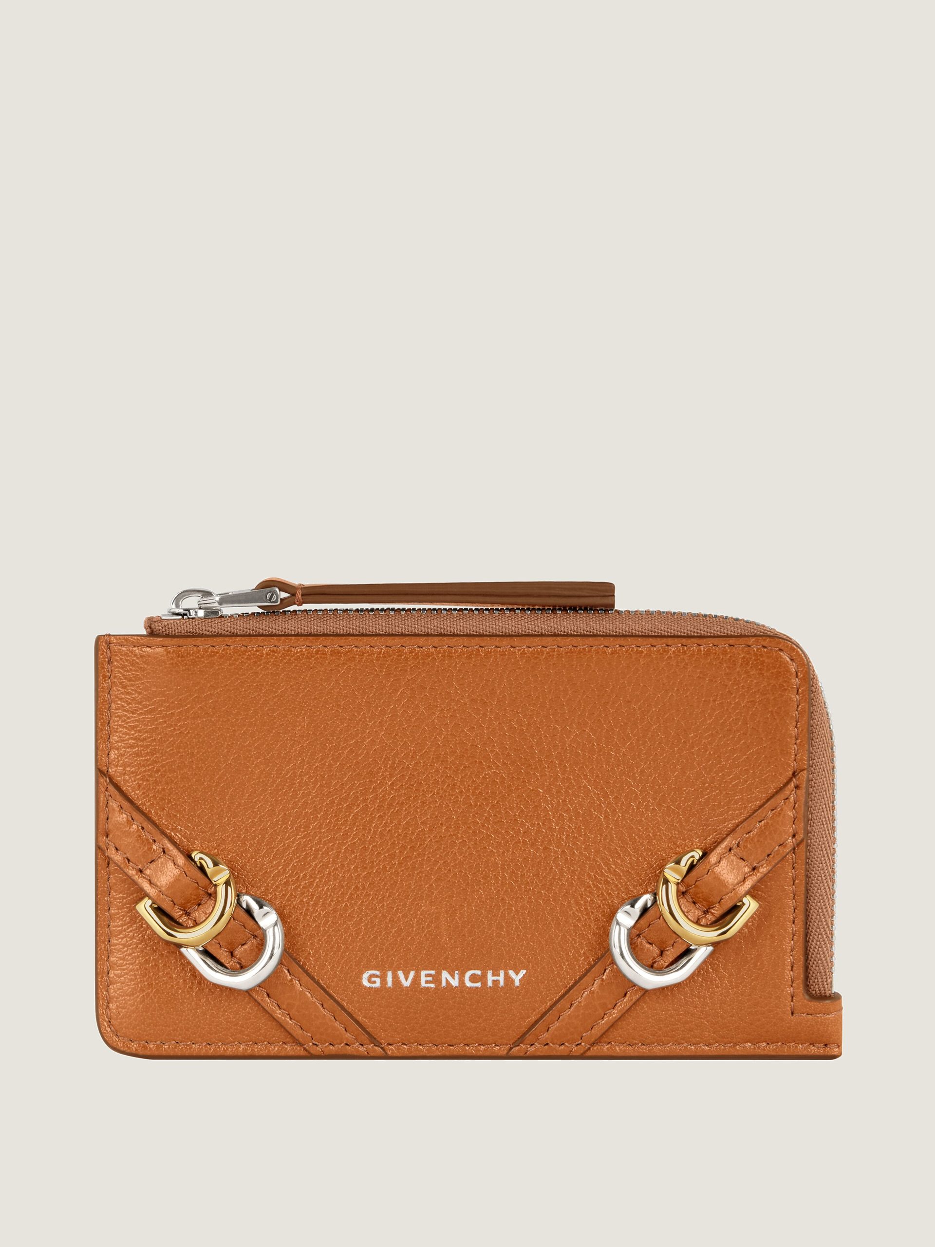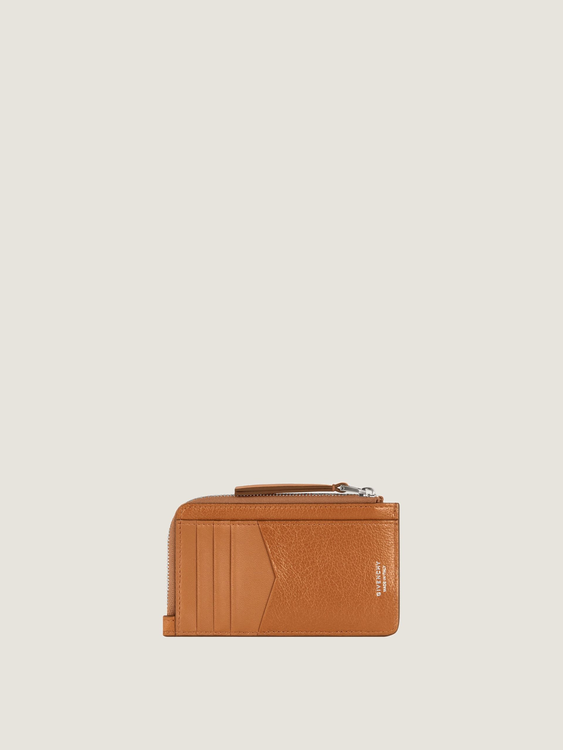- Zipped card holder in tumbled buffalo leather with leather zipper pull.
