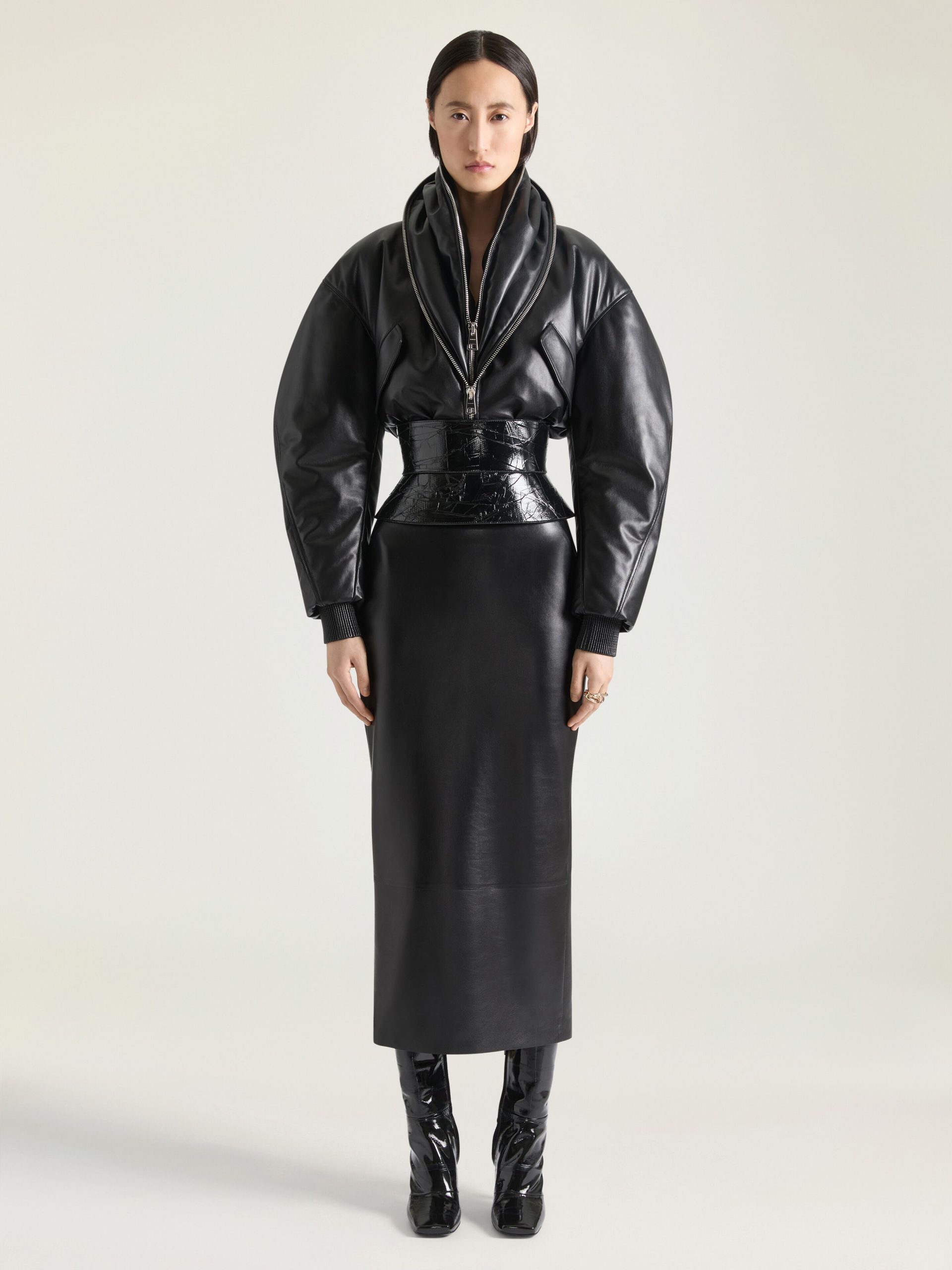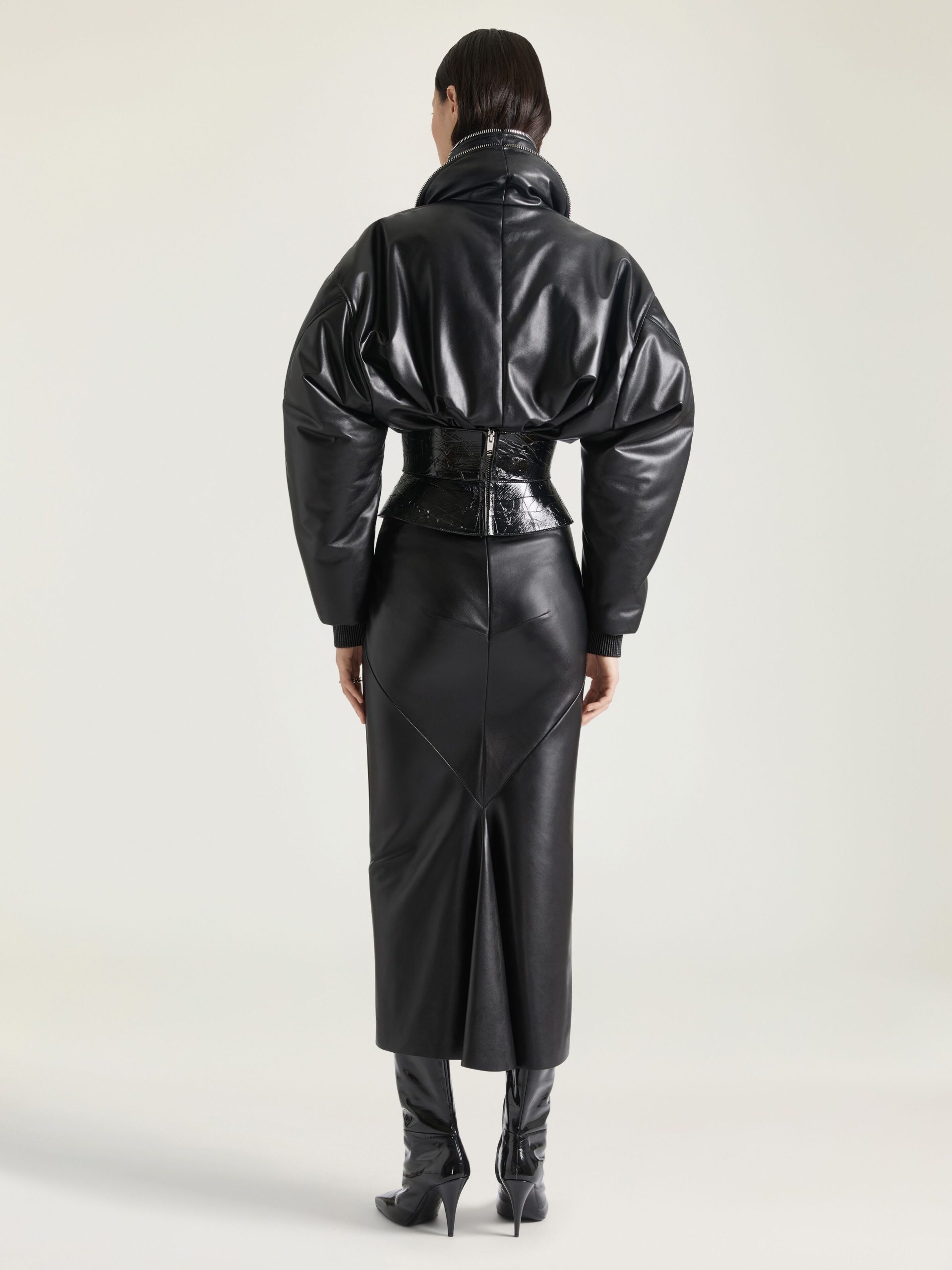 - Corset belt in textured nappa leather.