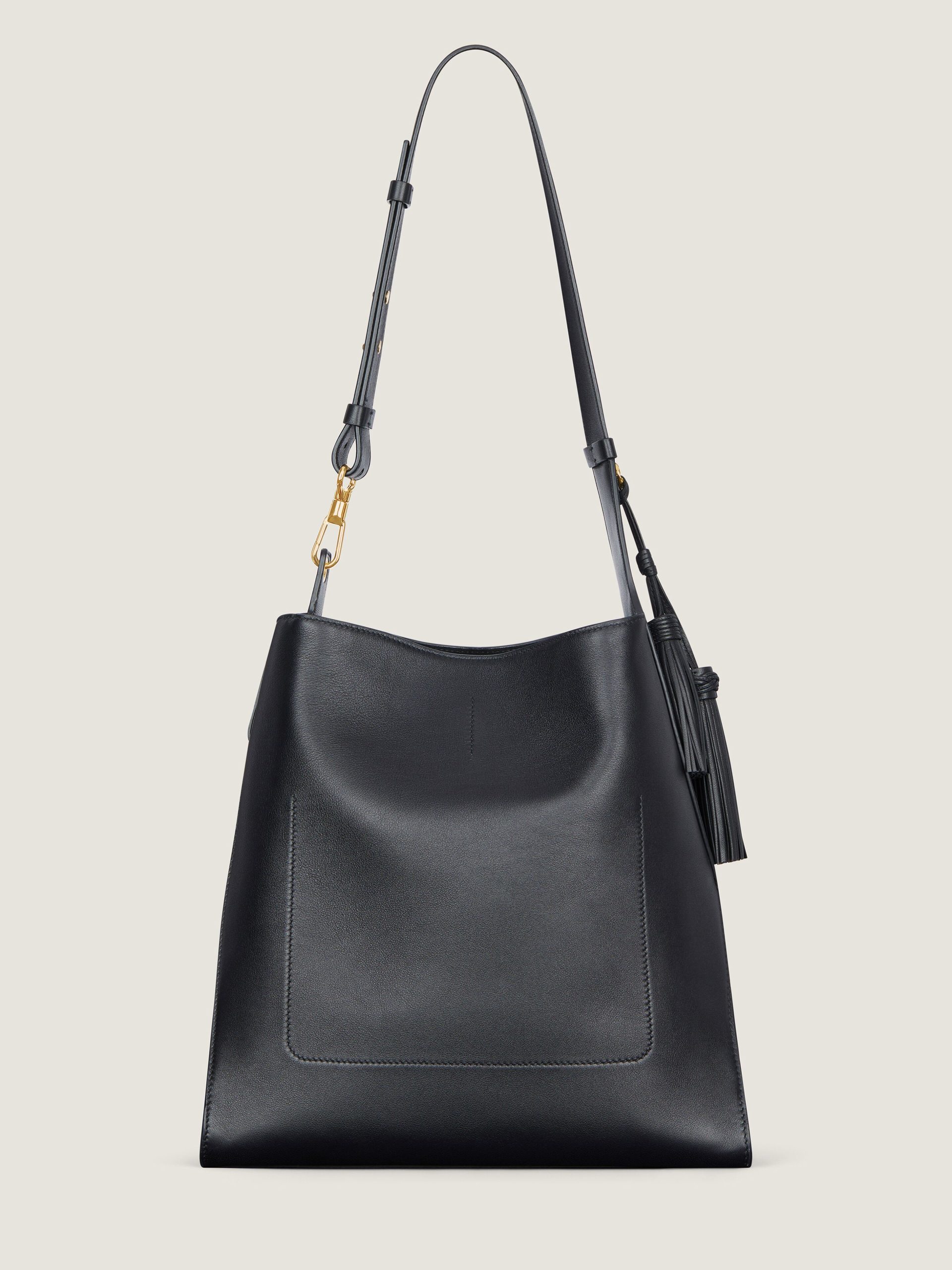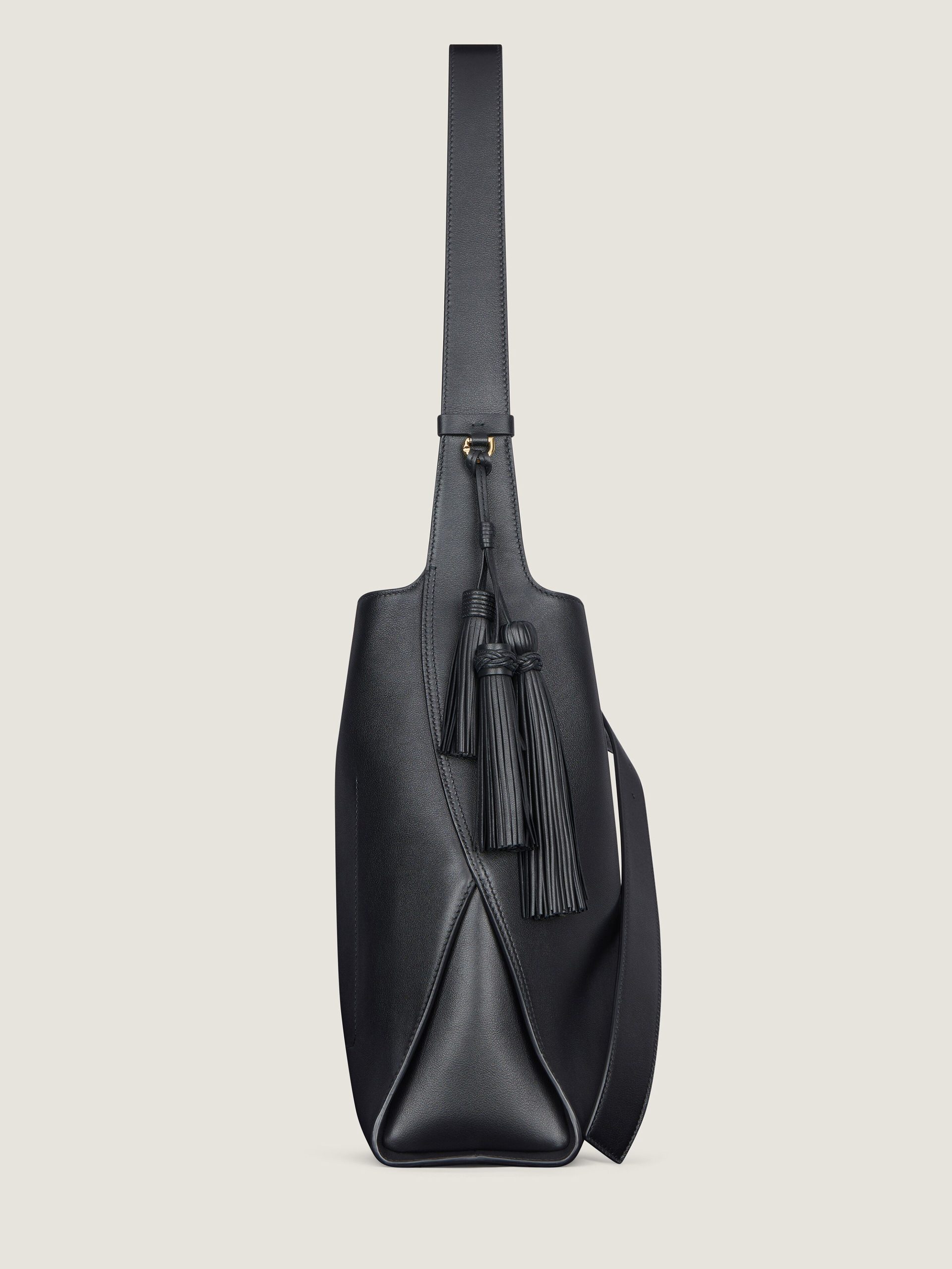 - Medium Hobo bag in luxurious smooth and soft grained shiny leather.