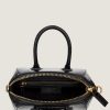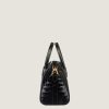 - Crocodile-effect embossed leather handles.