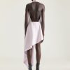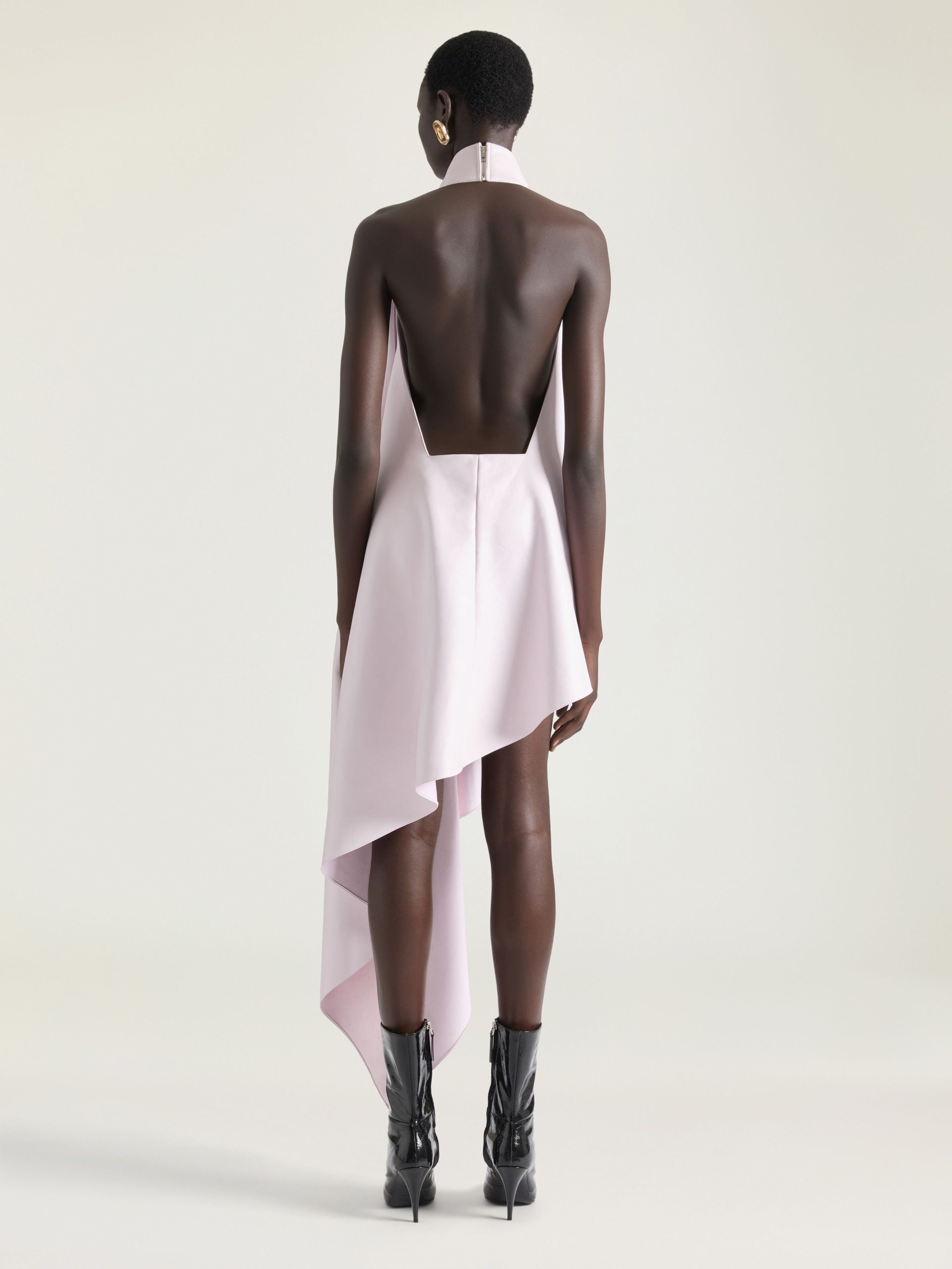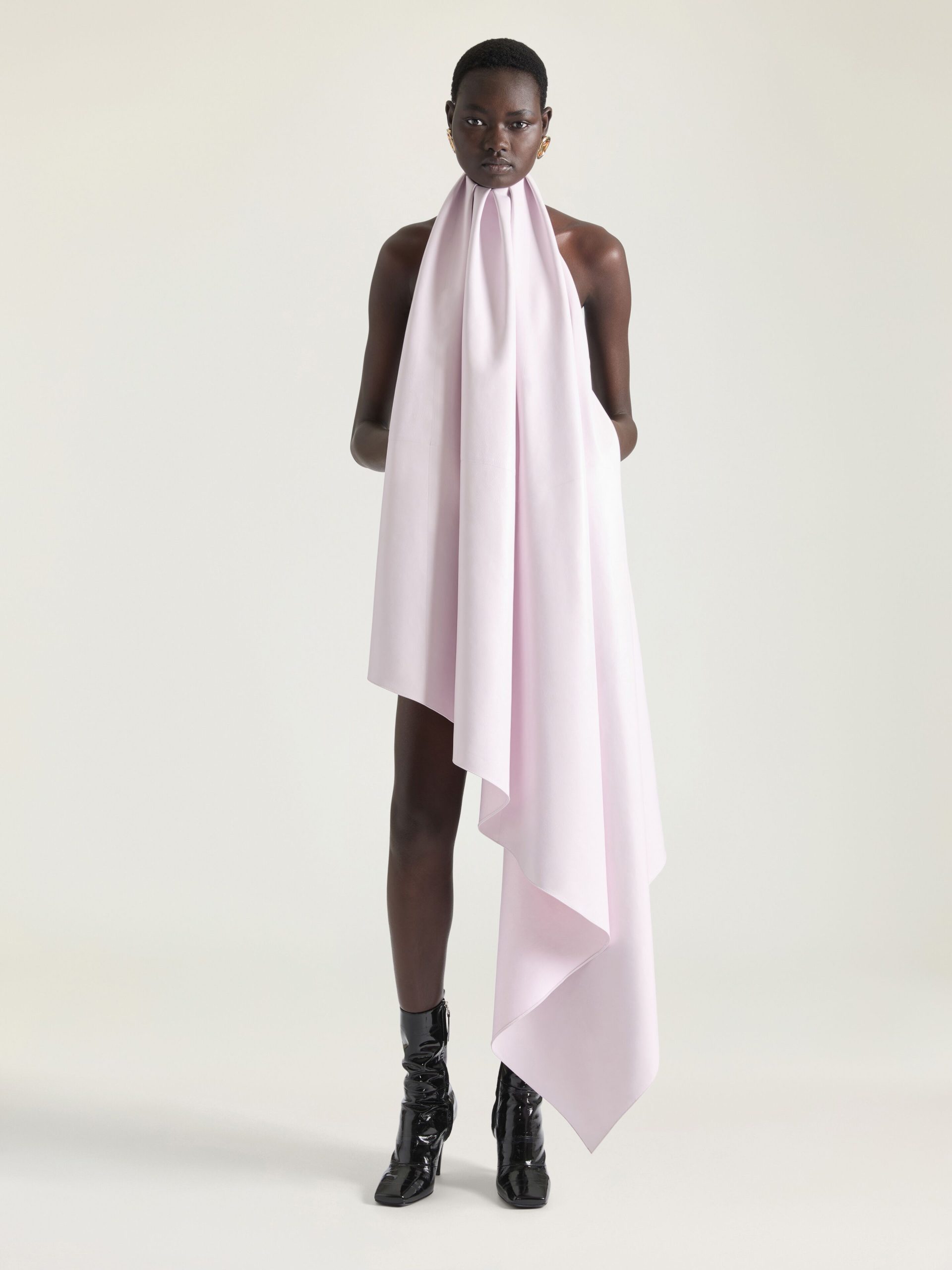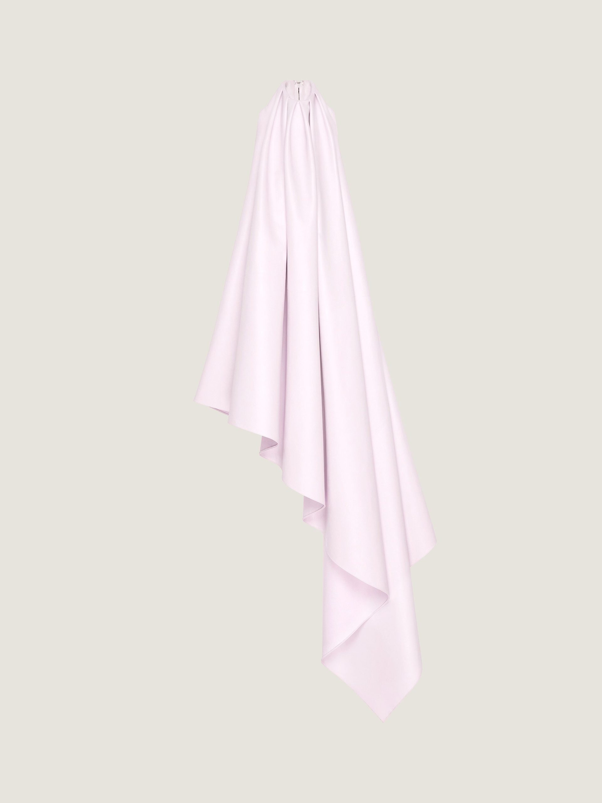 - Sleeveless asymmetric sliced evening dress in nappa leather.
