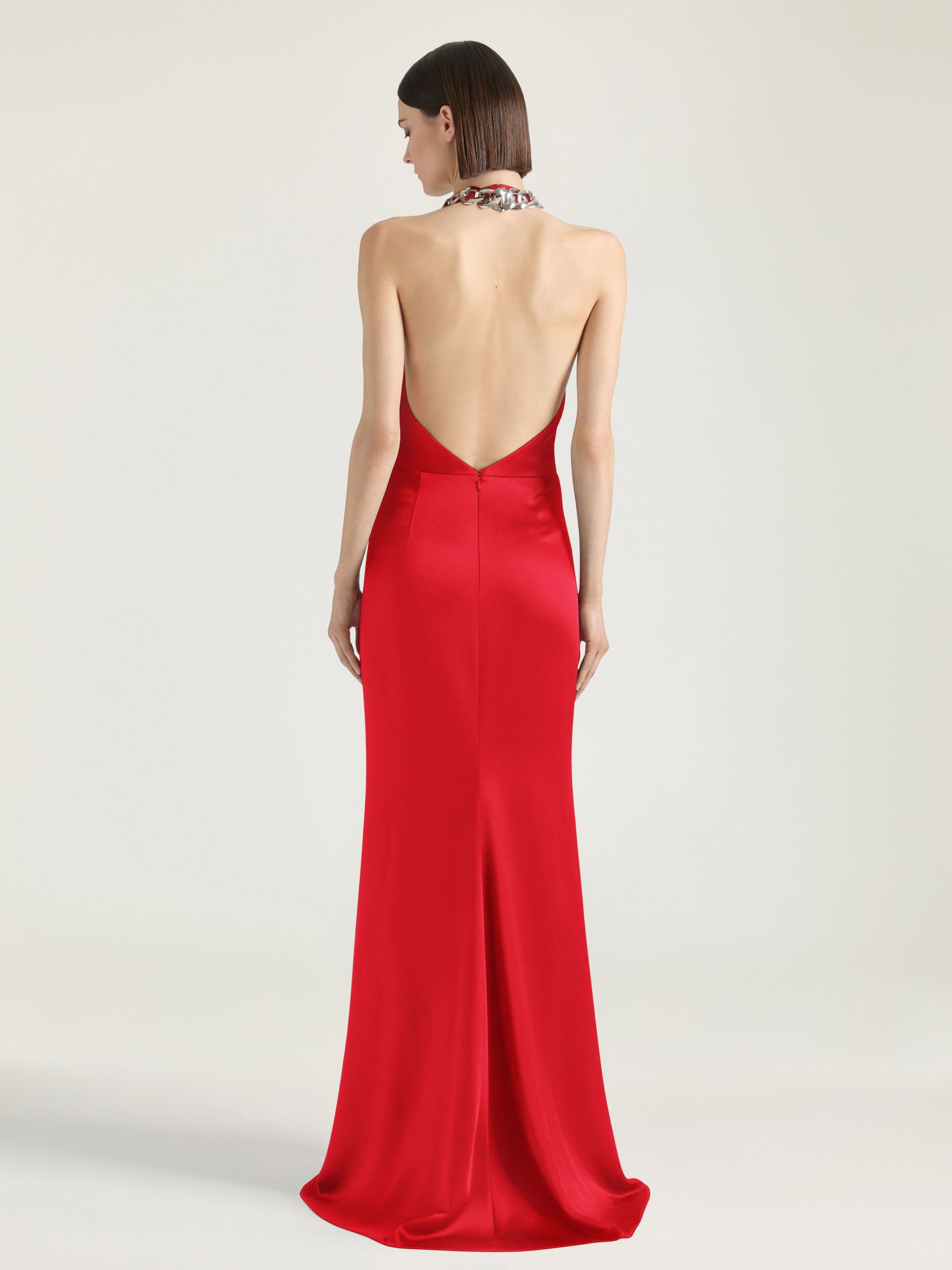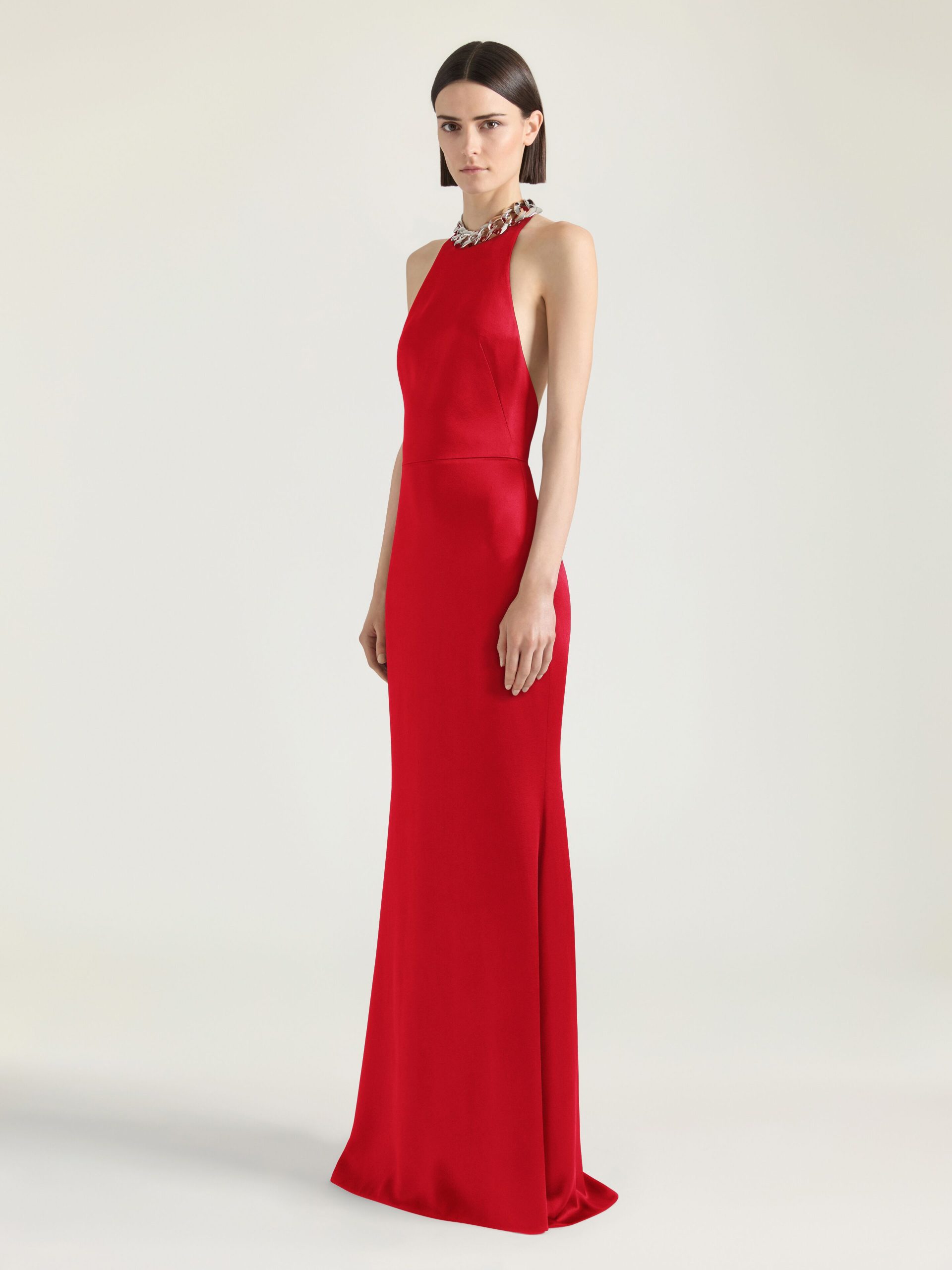 Givenchy Women’s Ready-to-wear Halter Neck Dress In Crepe And Satin In – Vermillon | Vermillon