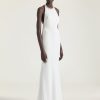 - Invisible zipped closure on the back and hook at neck.