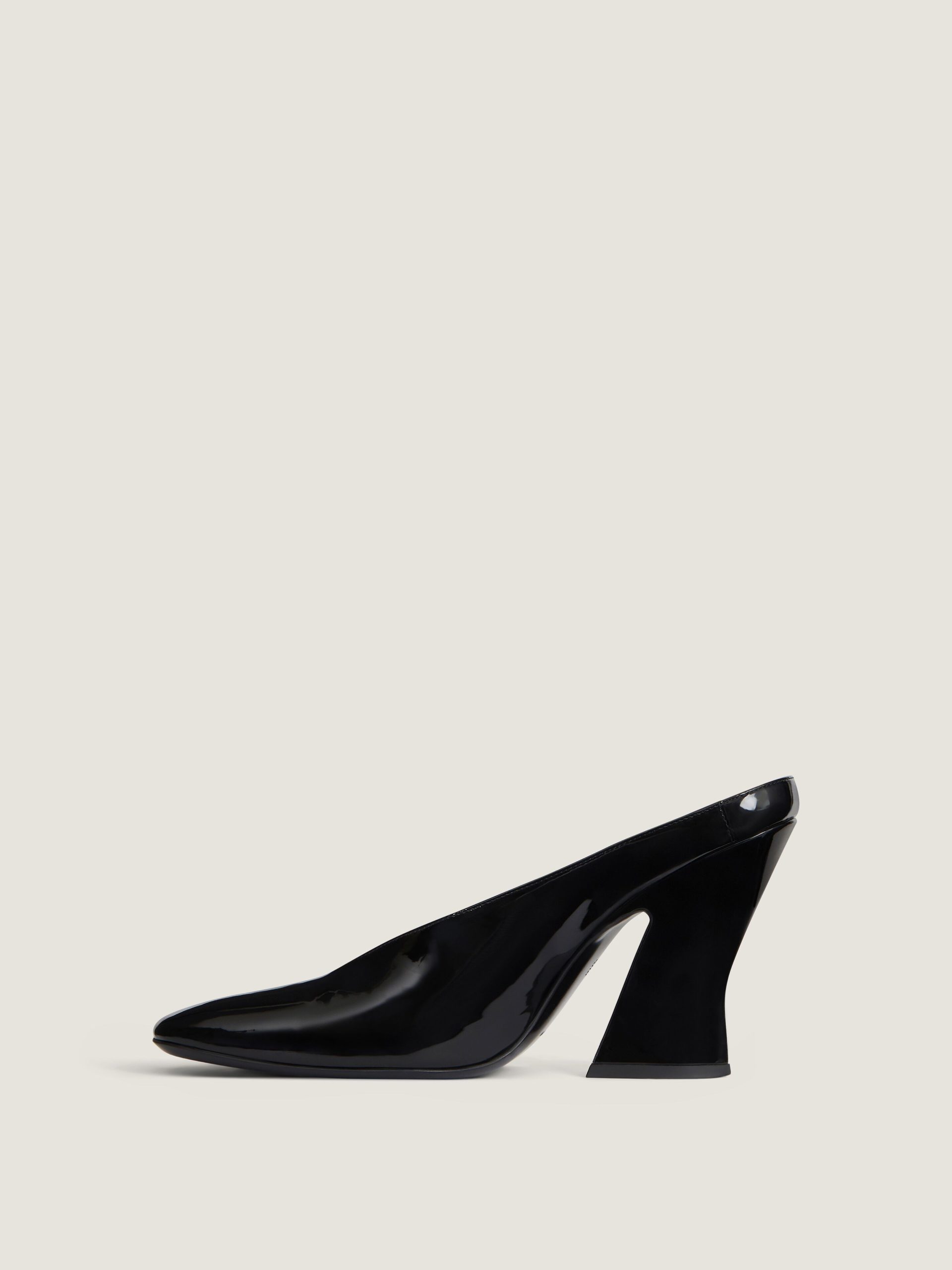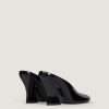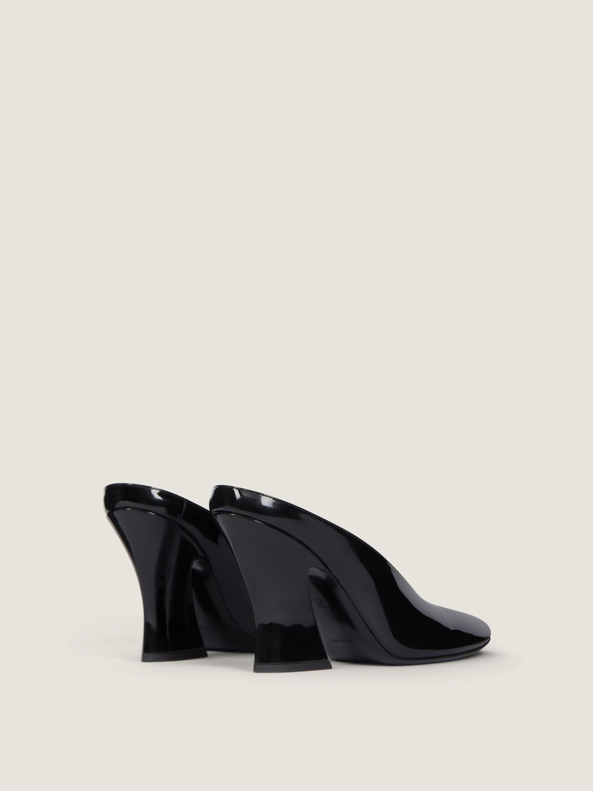 - Heeled mules in patent calfskin leather.