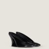 - Heeled mules in patent calfskin leather.