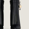 - Hidden zipper with leather zipper pull on the inside of the foot.