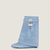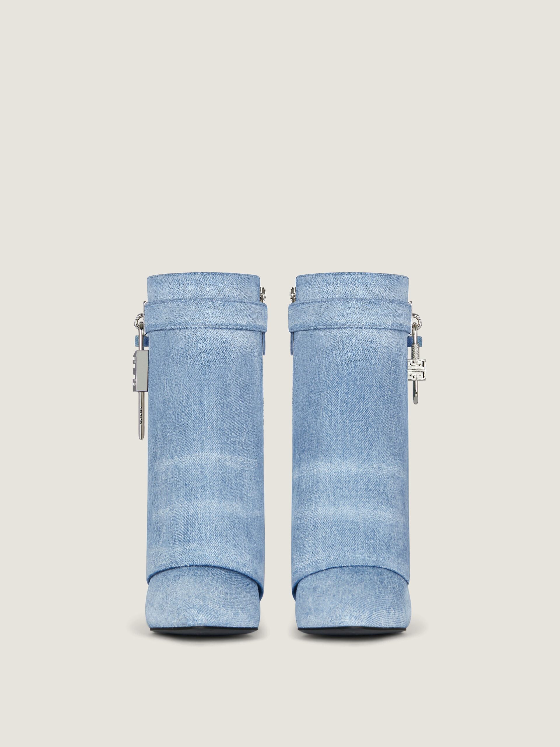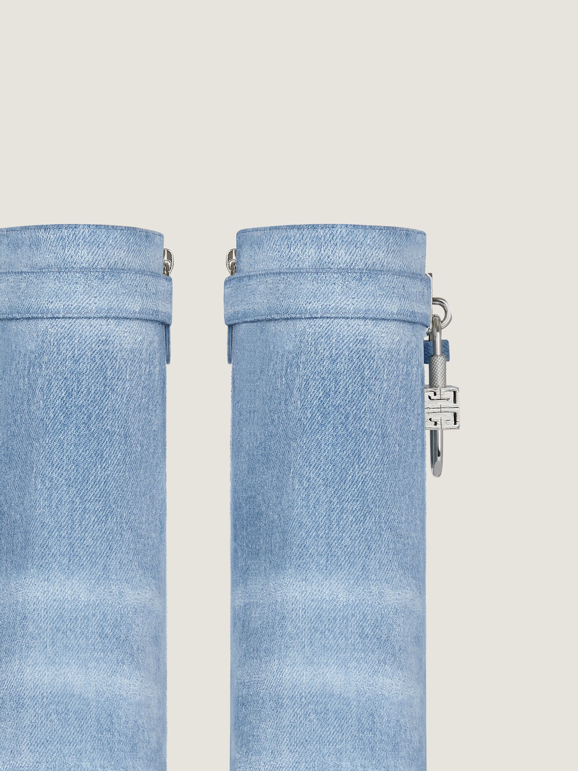 - Denim band with a GIVENCHY metal clasp and 4G padlock on the right boot.