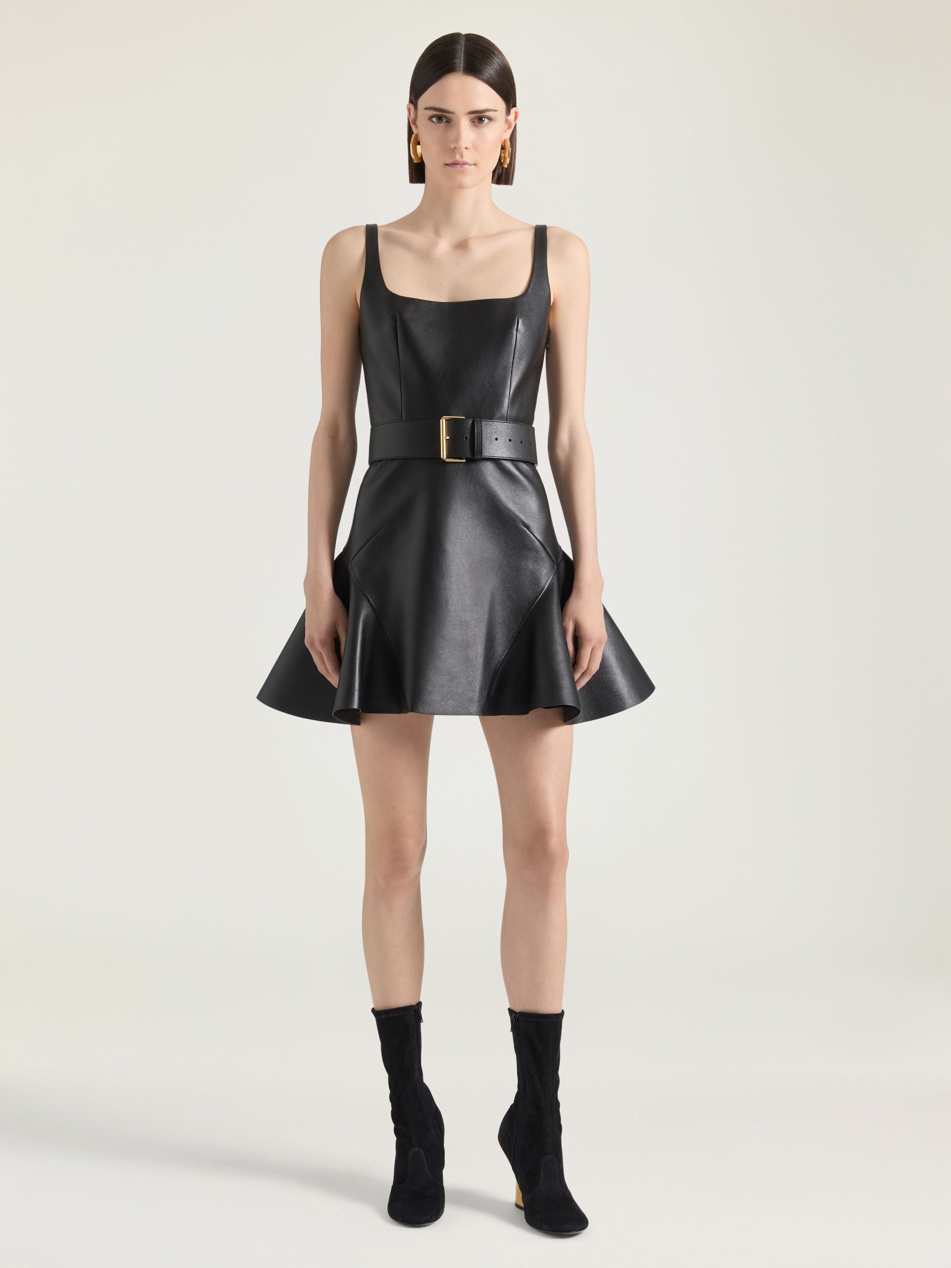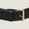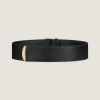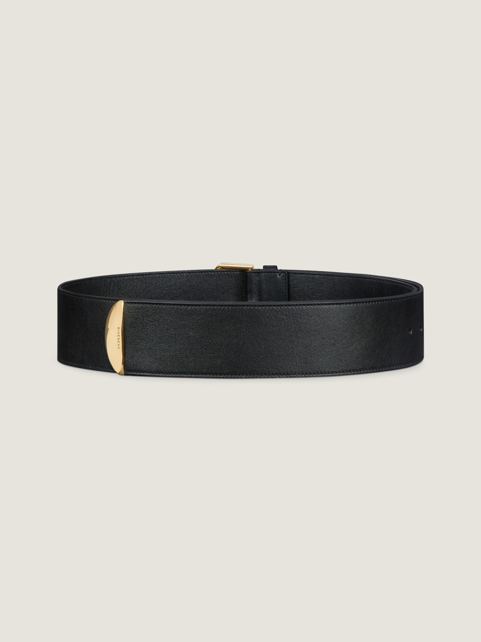 - Large and long belt in shiny calfskin leather.