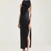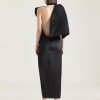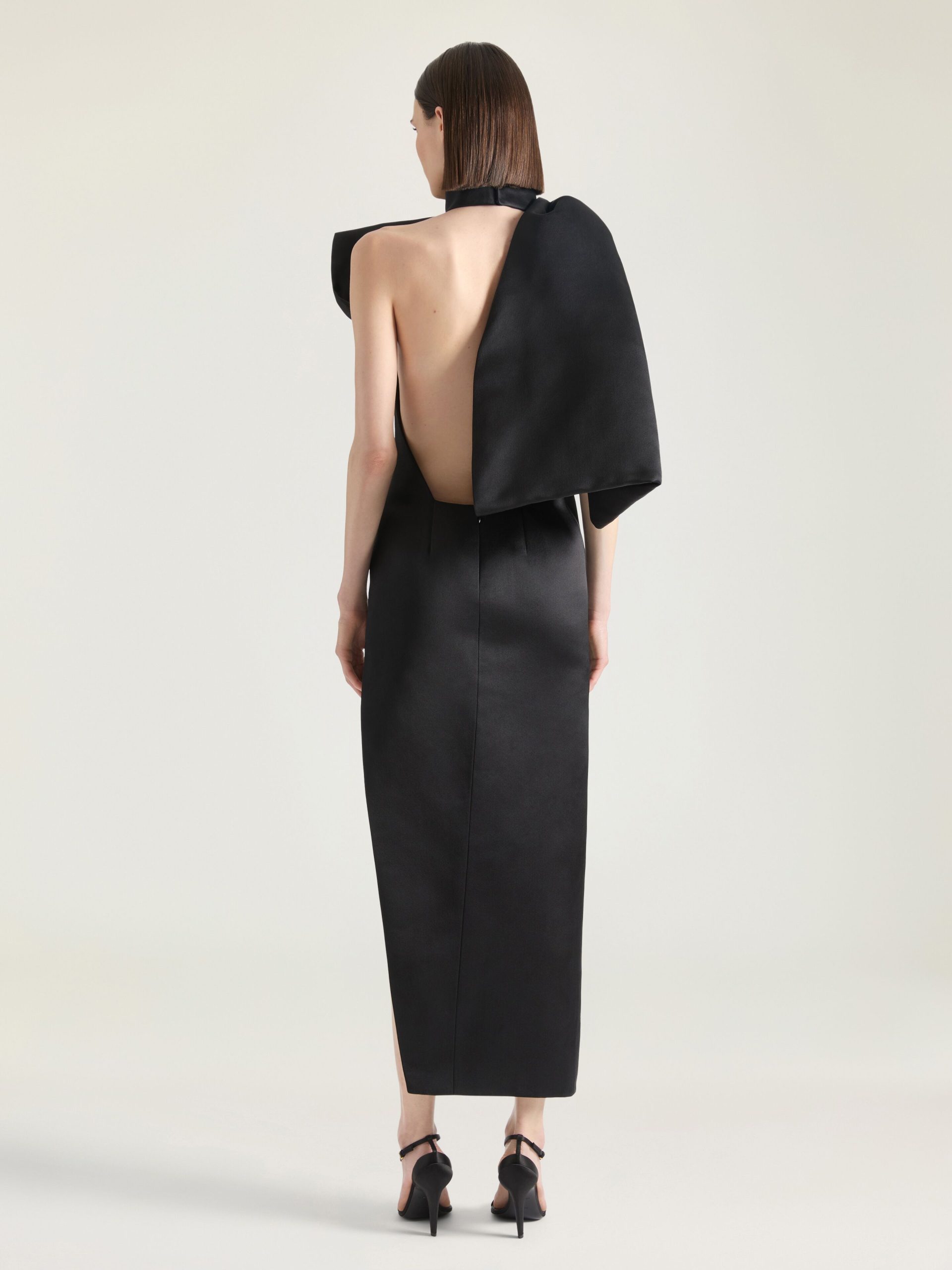 - Long evening dress in silk satin duchesse.